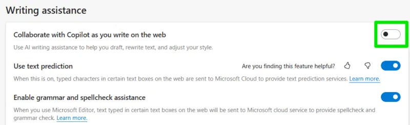 Trong cài đặt của Edge, hãy vào Languages và tắt tùy chọn Collaborate with Copilot as you write on the web.